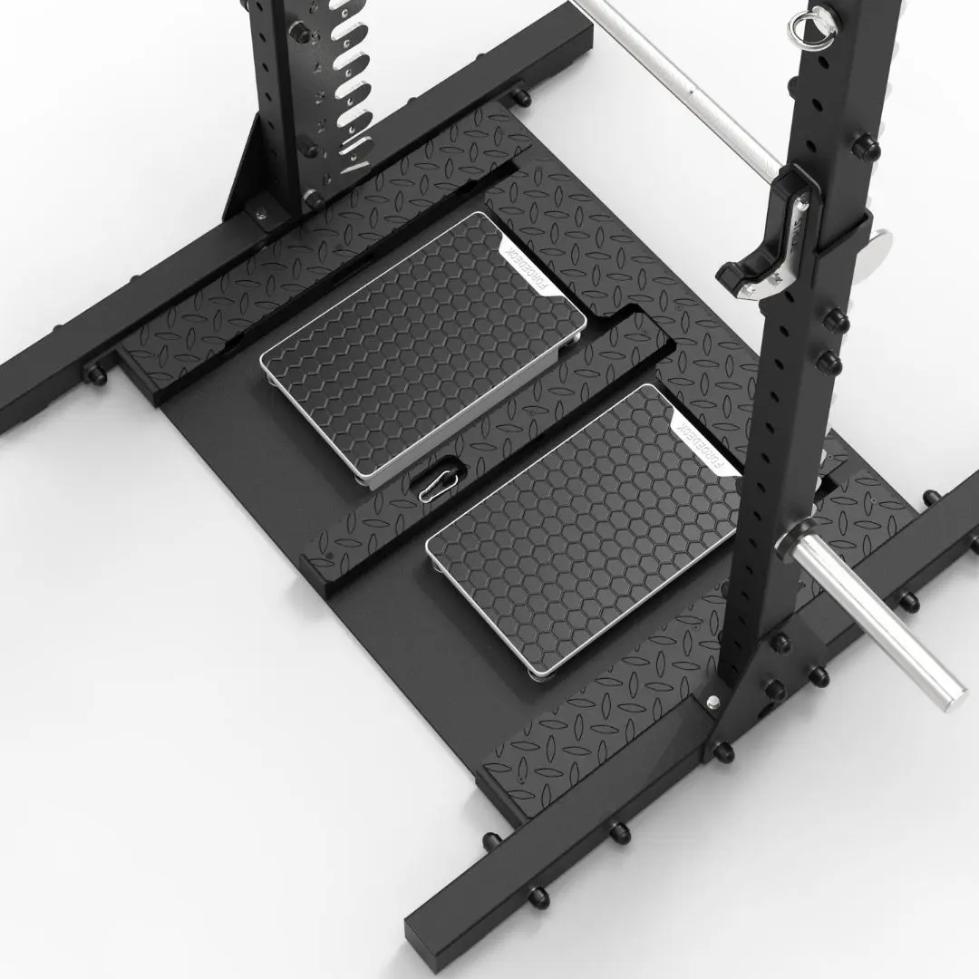 Use one side for VALD tests and another side for standard strength training with adjustable J-Cups and Olympic Barbell
