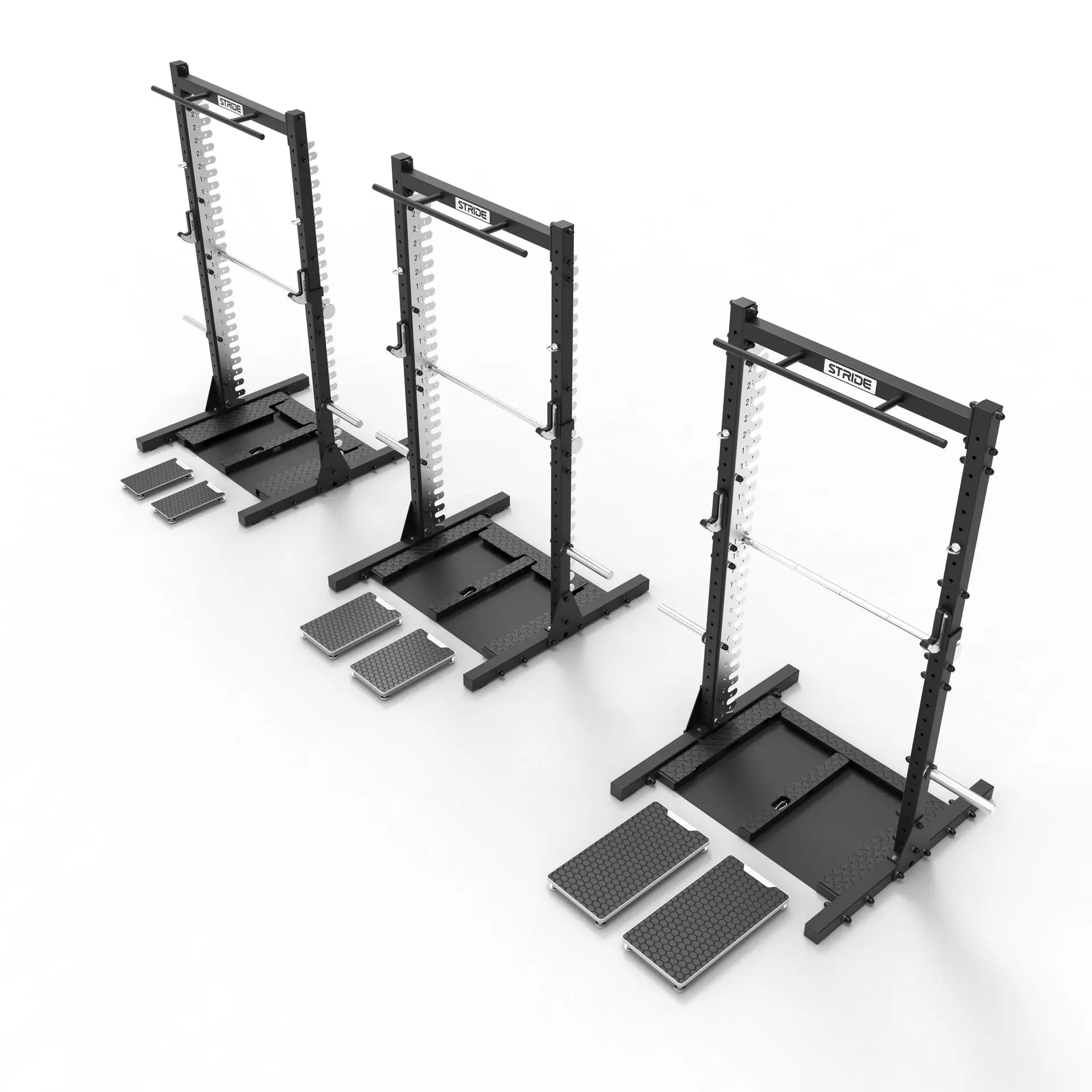 Our innovative 2-for-1 rack combines versatility and efficiency in a single system. On one side, it functions as a dedicated ISO rack, while the other side doubles as a standard squat rack for everyday strength training. It also includes two plate pins to securely store your weight plates.